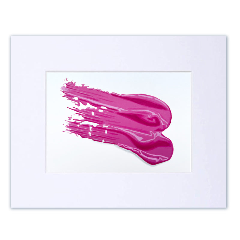 5"x7" study of a pink wet paint smear. This is an original, flat acrylic painting on heavy weight vellum paper, matted with an 8"x10" white beveled mat. Signed by the artist on the back.