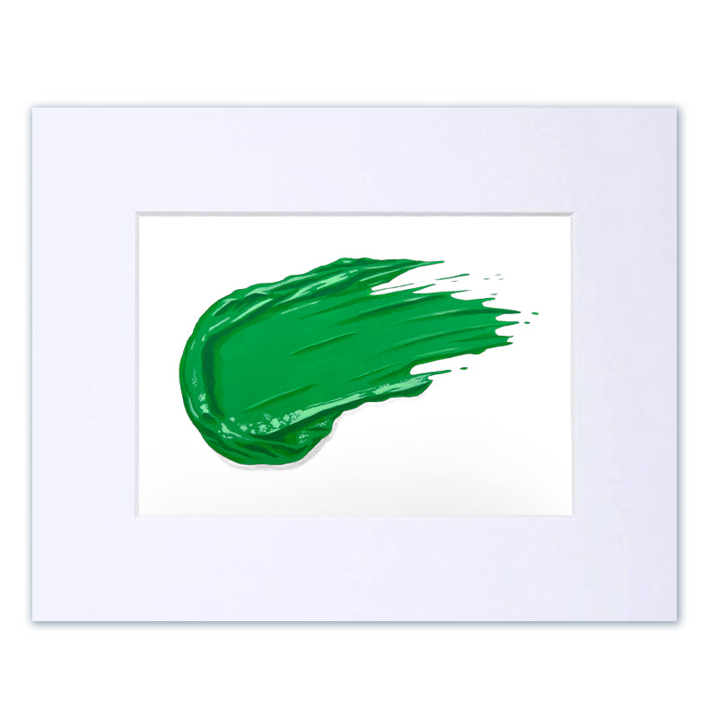 5"x7" study of a green wet paint smear. This is an original, flat acrylic painting on heavy weight vellum paper, matted with an 8"x10" white beveled mat. Signed by the artist on the back.