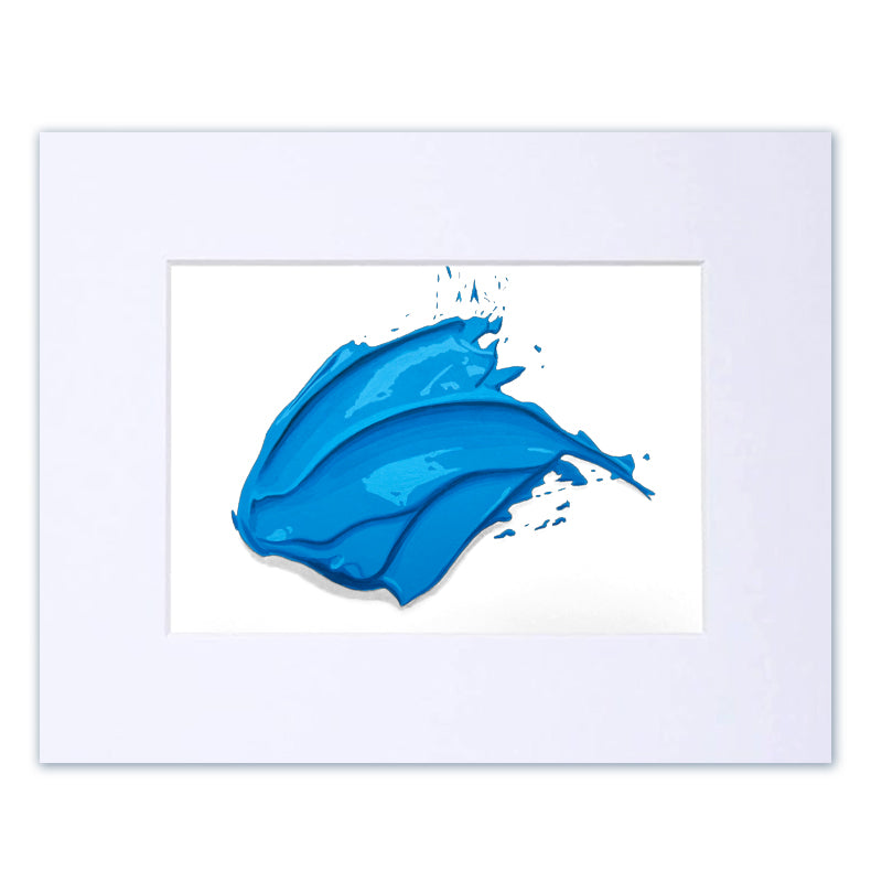 5"x7" study of a blue wet paint smear. This is an original, flat acrylic painting on heavy weight vellum paper, matted with an 8"x10" white beveled mat. Signed by the artist on the back.