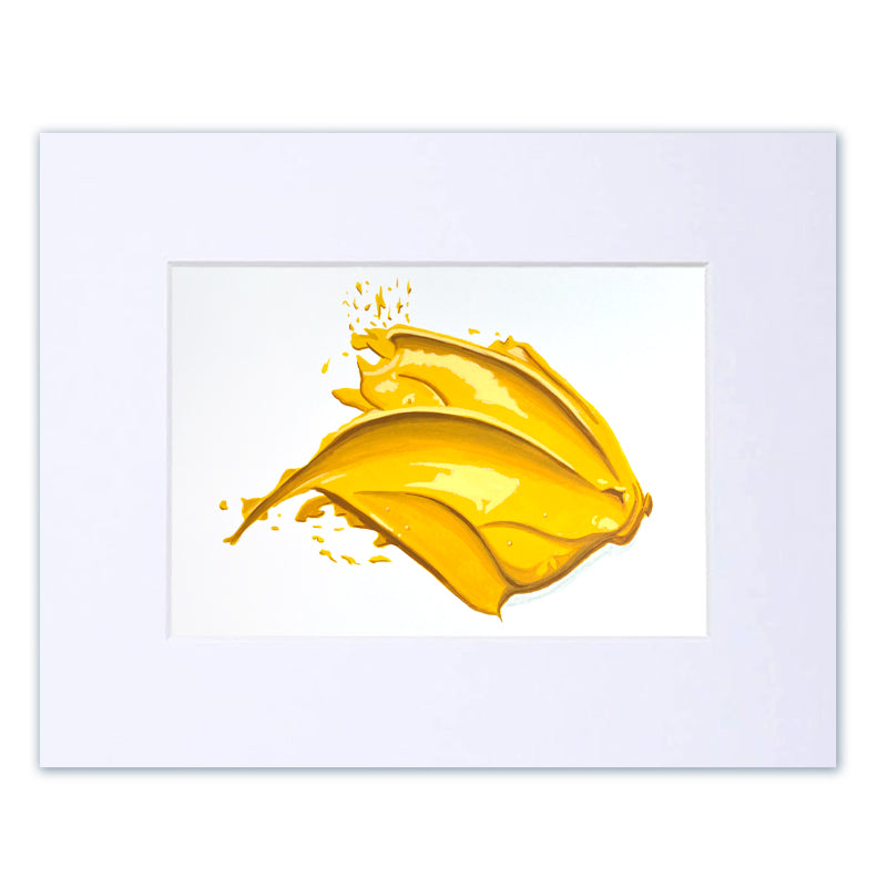5"x7" study of a yellow wet paint smear. Acrylic on heavy weight vellum paper, matted with an 8"x10" white beveled mat. Signed by the artist on the back.